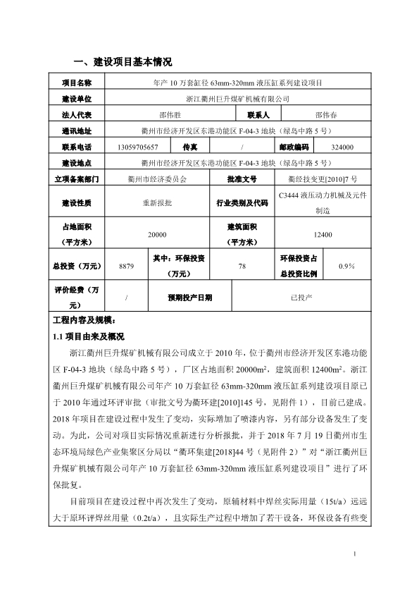 年產(chǎn)10萬(wàn)套缸徑63mm-320mm液壓缸系列建設(shè)項(xiàng)目環(huán)境影響登記表環(huán)評(píng)公示">